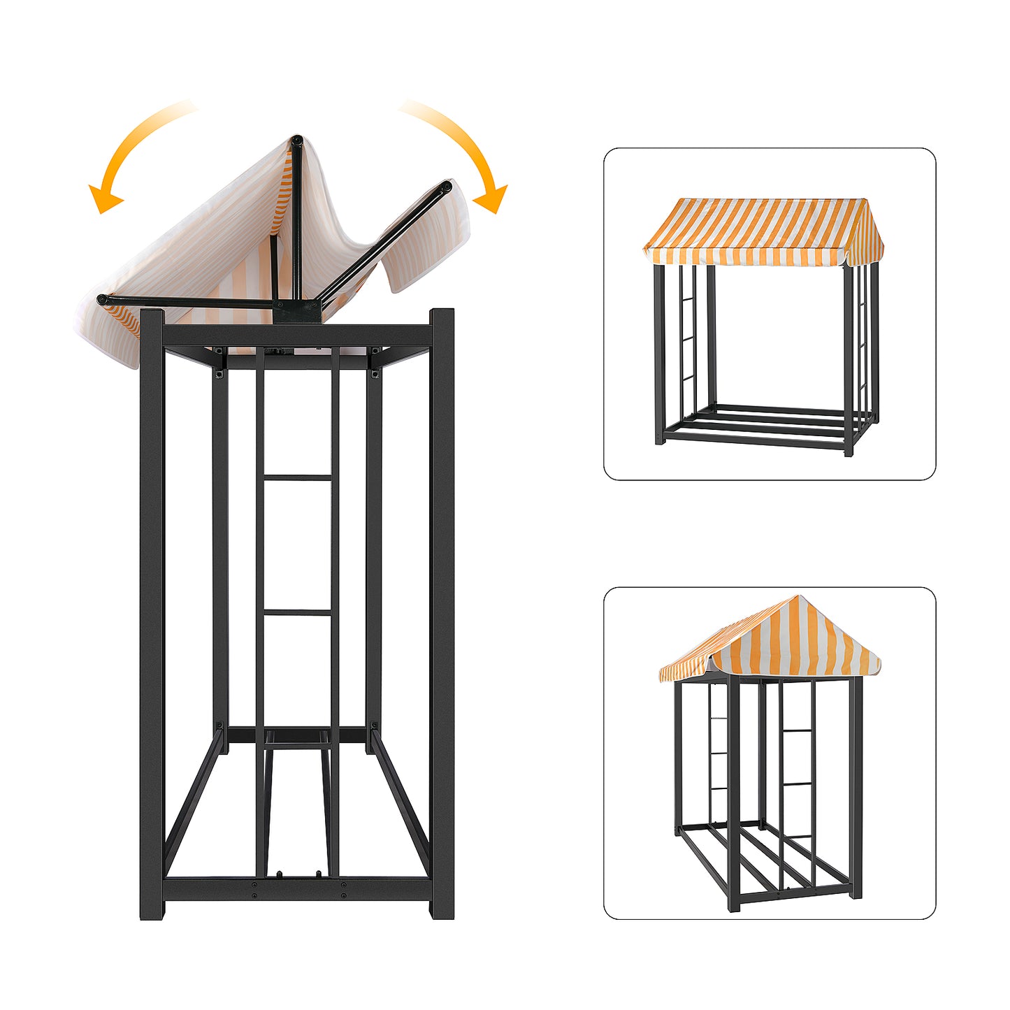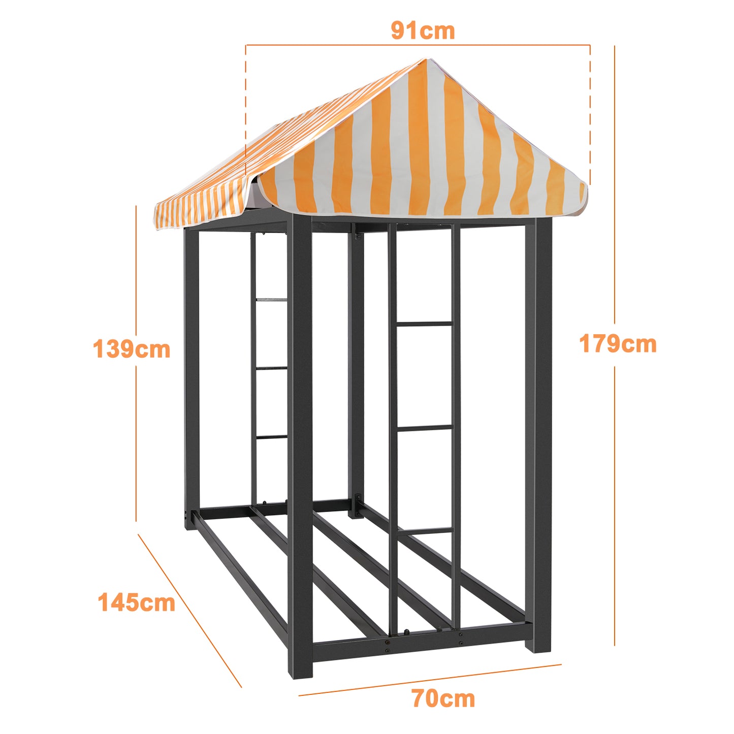 * Modernes Design mit praktischen Funktionen - das Dach schützt das Holz vor Regen und schafft eine elegante Optik. Die Abdeckung ist aus wasserdichtem Polyester in weiß & orange gestreift und kann leicht entfernt werden.
