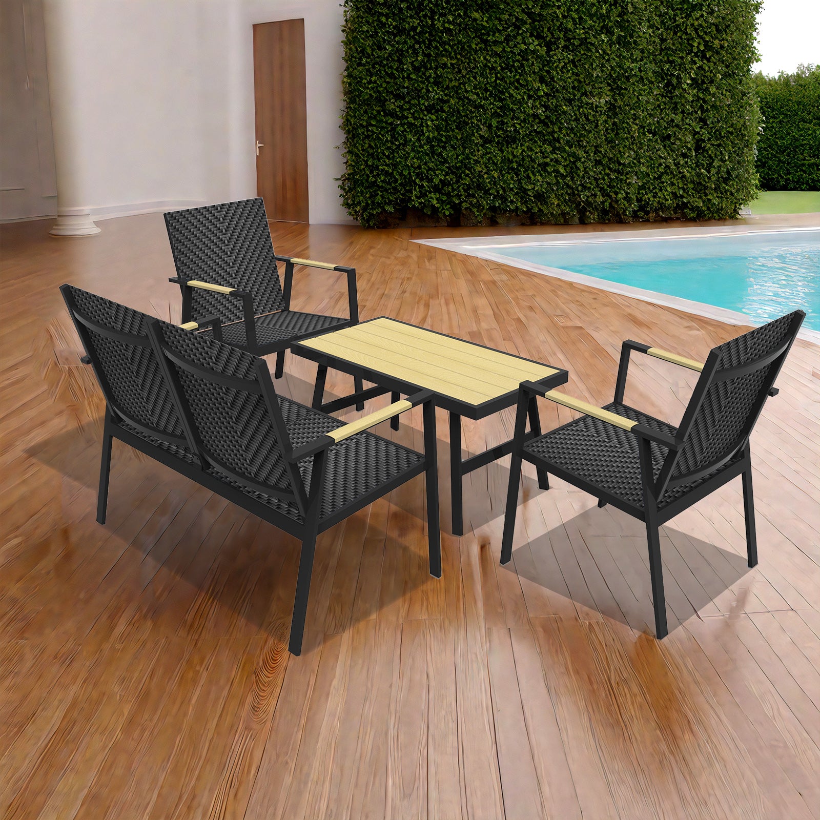 - Stabiler und haltbarer Vollaluminiumgestell mit wetterfestem und UV-geschütztem Gartenmöbelset für den ganzjährigen Einsatz.